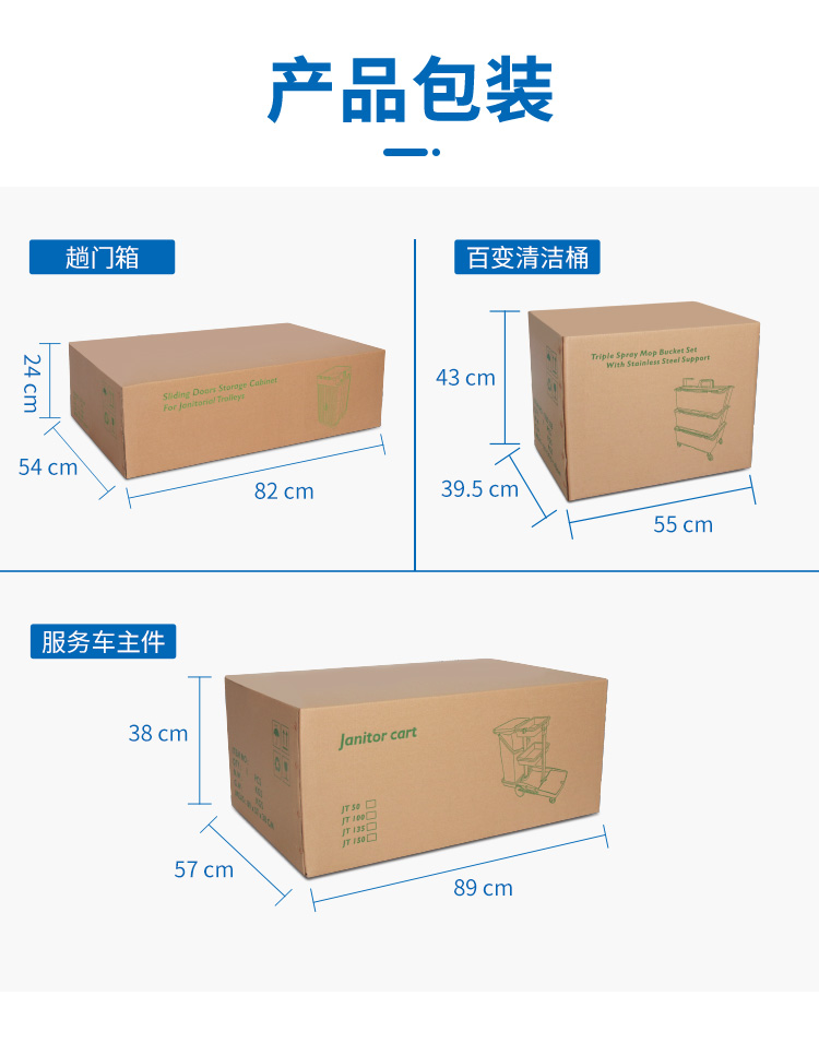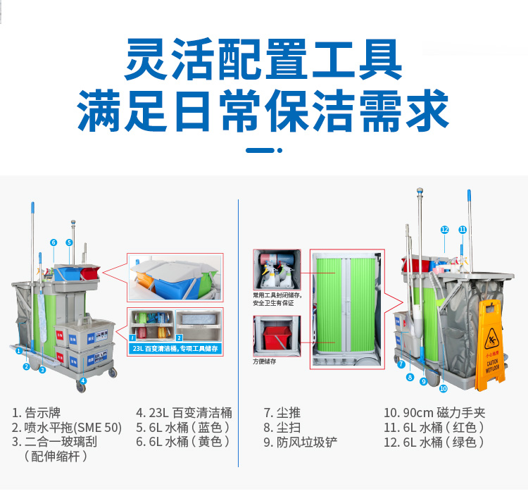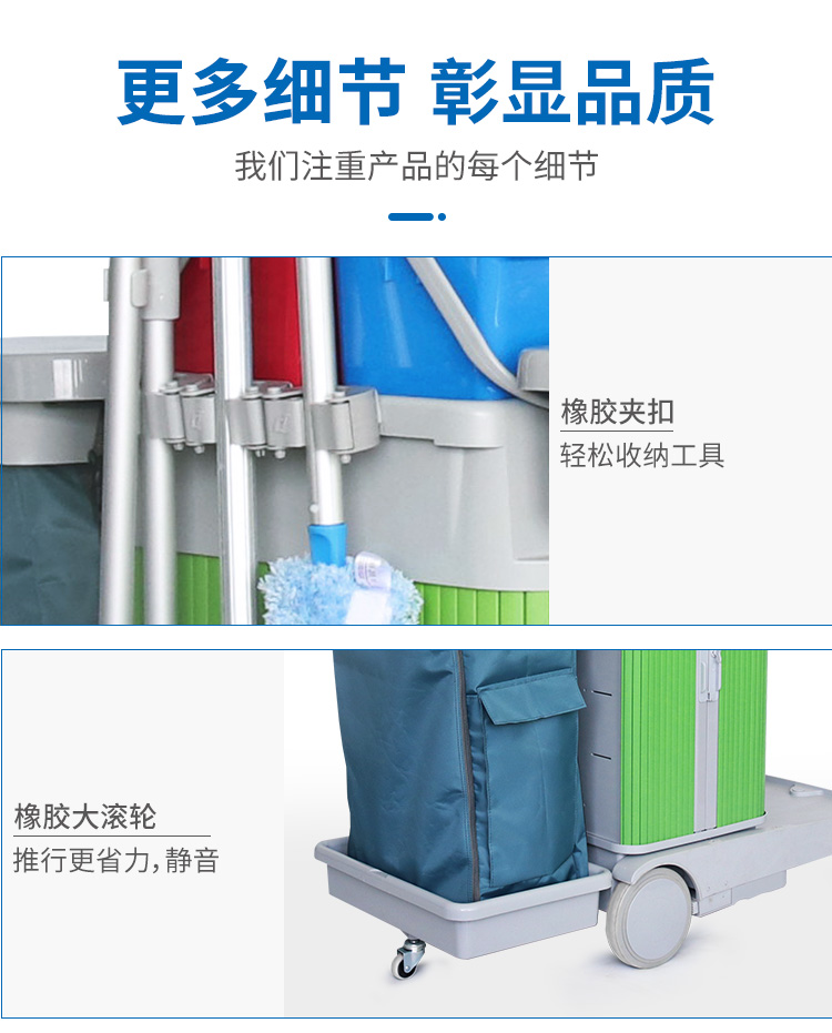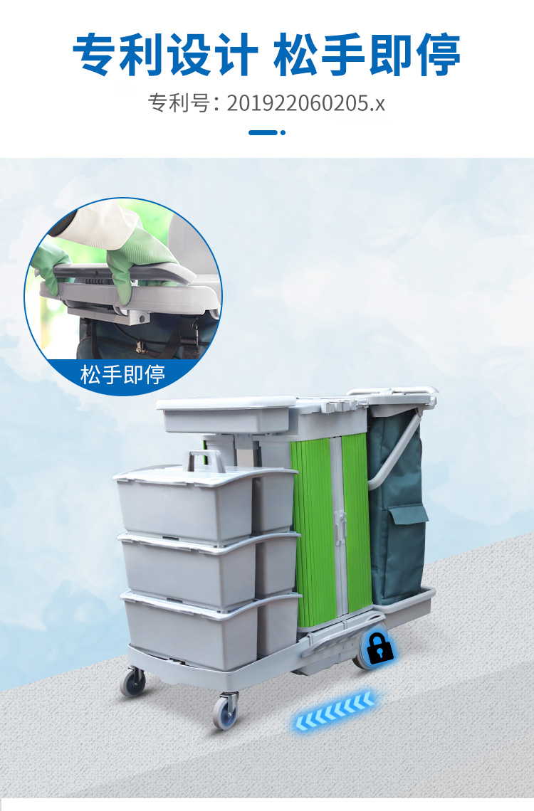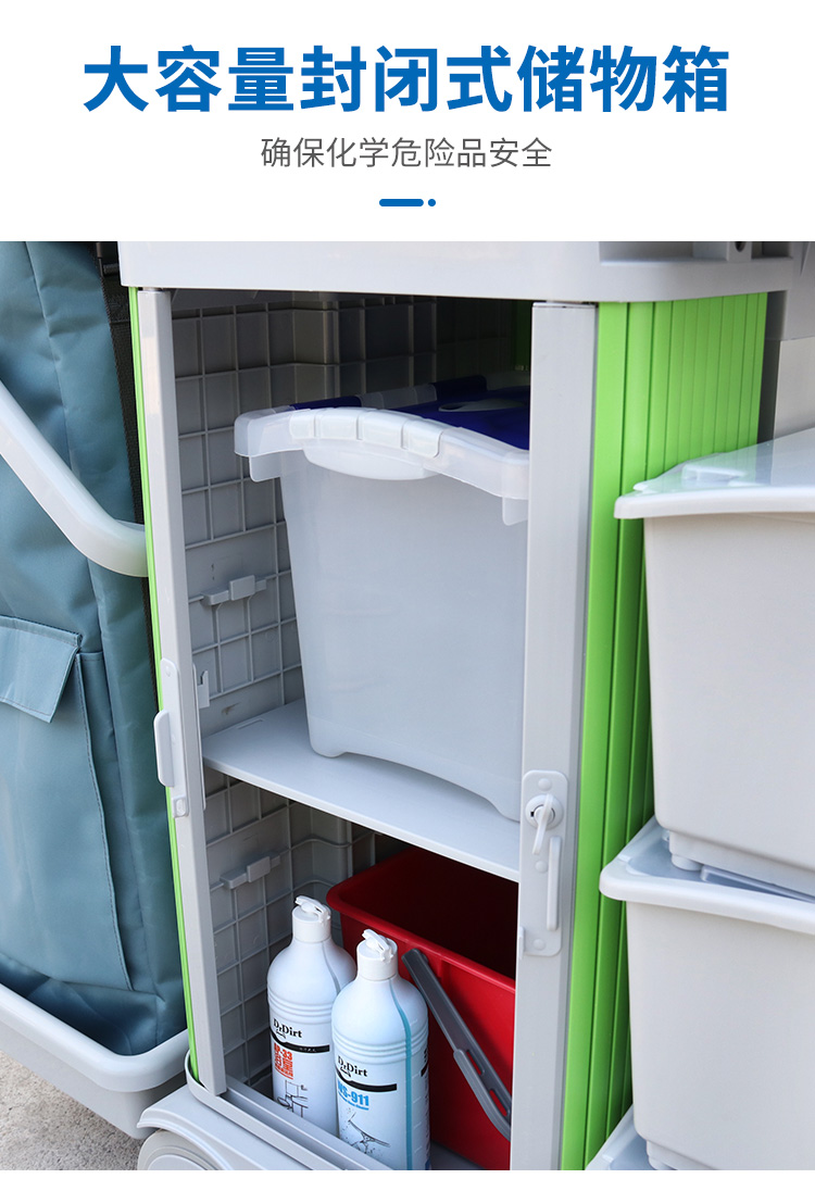 趟門儲(chǔ)物箱平拖清潔服務(wù)手推車帶制動(dòng)裝置