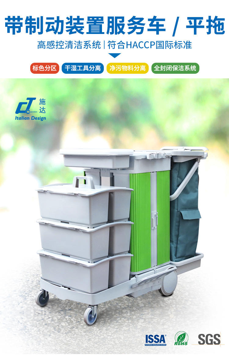 - 類別:大型清潔服務(wù)手推車 - 帶制動(dòng)裝置服務(wù)車