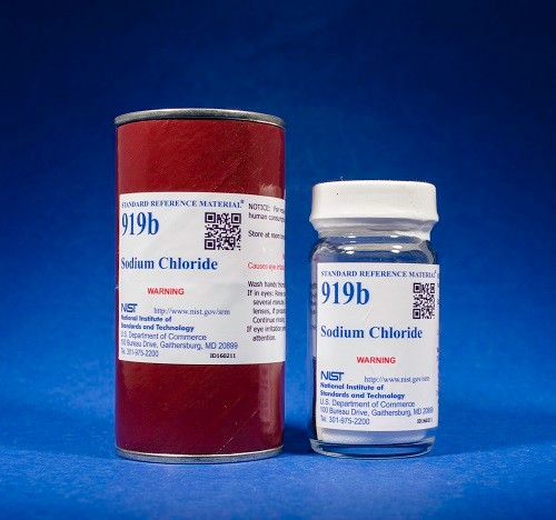 SRM 919b 氯化鈉用于生產準確已知濃度的鹽水溶液,以及用于測定鈉離子和氯離子的儀器校準和程序標準化。SRM 919b由一個裝有 30 克材料的玻璃瓶組成。