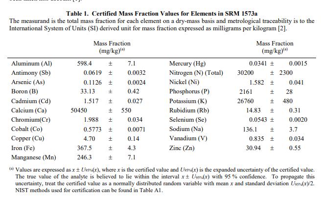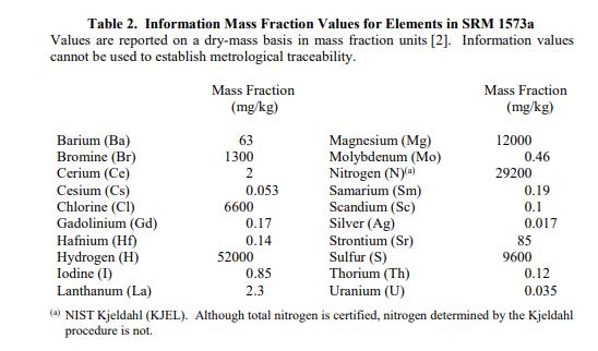 NIST SRM 1573a 番茄葉(標(biāo)準(zhǔn)品)主要用于驗(yàn)證測定植物材料、農(nóng)產(chǎn)品和類似材料中主要、次要和微量元素的分析方法。在為內(nèi)部控制材料分配值時(shí),此 SRM 可用于質(zhì)量保證。一個(gè) SRM 1573a 單元由 50 克干番茄葉組成。認(rèn)證的質(zhì)量分?jǐn)?shù)值:認(rèn)證的質(zhì)量分?jǐn)?shù)值在表 1 中提供。 NIST 認(rèn)證值是 NIST 對其準(zhǔn)確性有最高置信度的值,因?yàn)樗幸阎蚩梢傻钠顏碓炊家驯豢紤]在內(nèi)