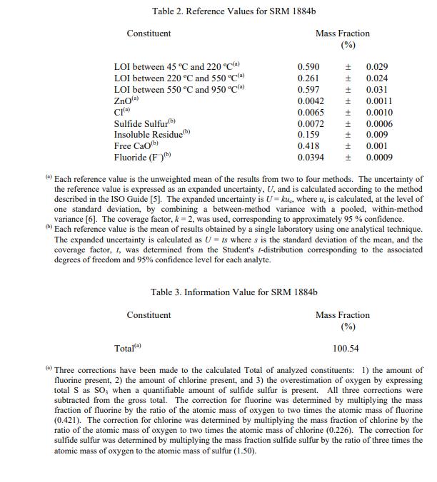 計(jì)算的所有已確定成分的總價(jià)值在表 3 中報(bào)告為信息值。信息值被認(rèn)為是 SRM 用戶感興趣的值,但沒(méi)有足夠的信息來(lái)評(píng)估不確定性與值 [2] 相關(guān)聯(lián)。