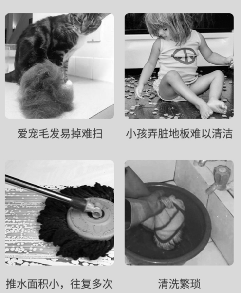 能忍嗎?我不能忍,又累又浪費(fèi)時(shí)間,我可不樂(lè)意,機(jī)智勇敢美麗的我,早就對(duì)家務(wù)活總結(jié)出了非常實(shí)用的經(jīng)驗(yàn):自己搞,不如靠科技,準(zhǔn)備一鍵戰(zhàn)斗力十足的拖地工具,讓家務(wù)事變得輕松百倍。