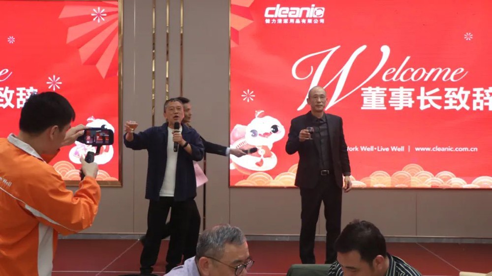 晚宴開始前,吳董向全體員工和來賓們分享了公司的使命、愿景、價值觀,以及公司未來5年的發展戰略。黃董則肯定了各部門及同事們在2024年所取得的進步,并向全體同事與現場嘉賓致以新年的問候。