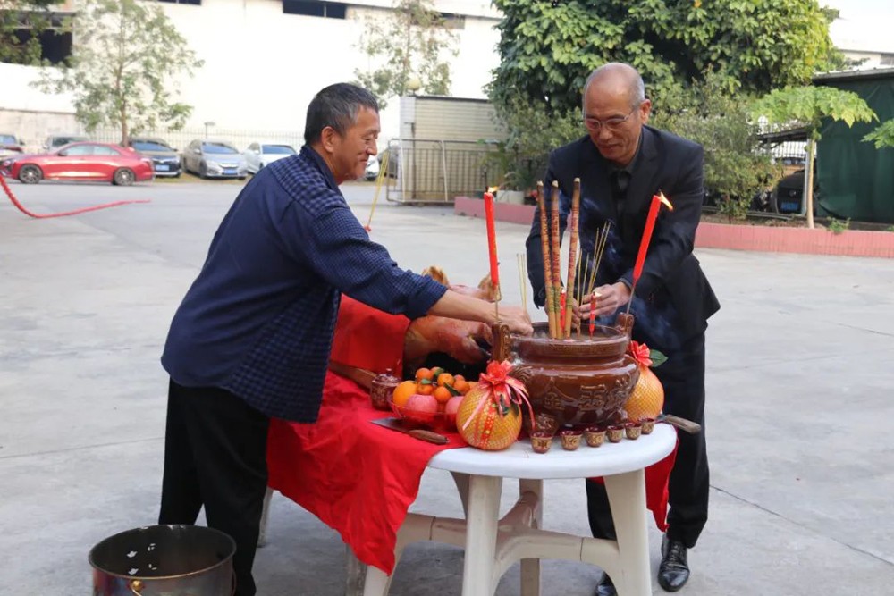 2025年2月14日,健力集團蛇年春茗活動,吳董(左)與黃董(右)主持祭祀儀式,祈求全體同事們事事順利、集團事業蒸蒸日上,也借此傳遞健力不畏困難、勇于挑戰的精神。