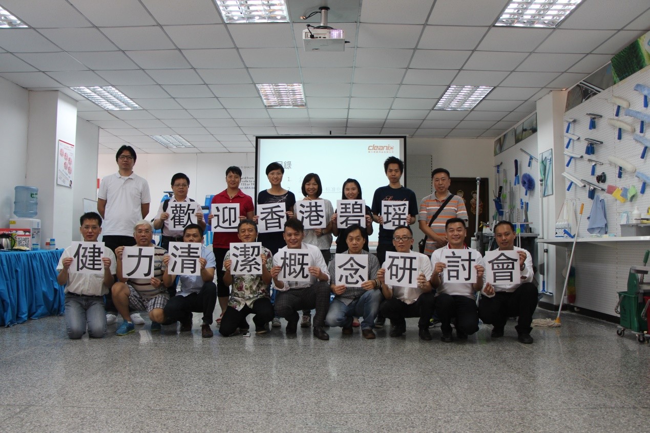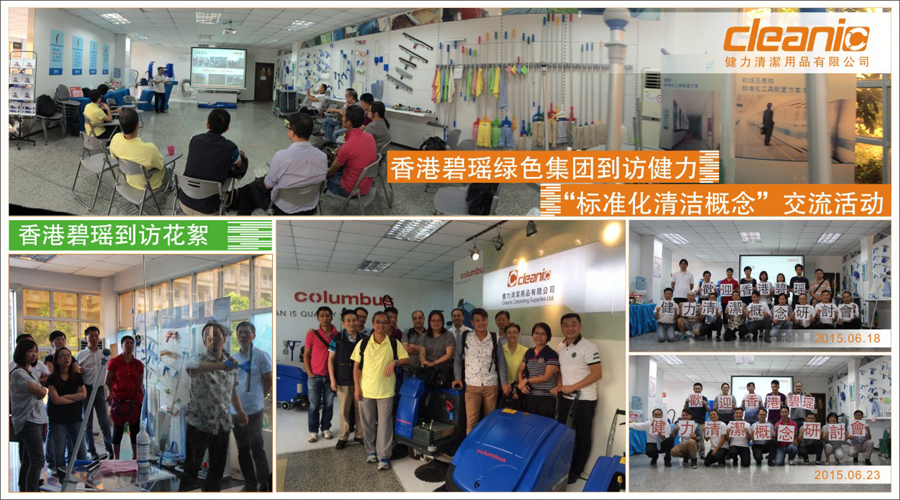 2015年6月18日及23日, 香港上市清潔公司 - 碧瑤綠色集團親臨佛山健力清潔用品有限公司之“標準化清潔概念”研討會。香港碧瑤為香港具領導地位的綜合環境服務供貨商,30多年為香港提供多樣化專業環境服務,包括: 專業清潔、綜合滅蟲管理、園藝工程、廢物回收和循環再造等服務. 香港碧瑤一直積極采用最新的技術和服務概念, 這次到訪研討“標準化清潔概念”,借此優化服務,為顧客提供最優質的體驗。