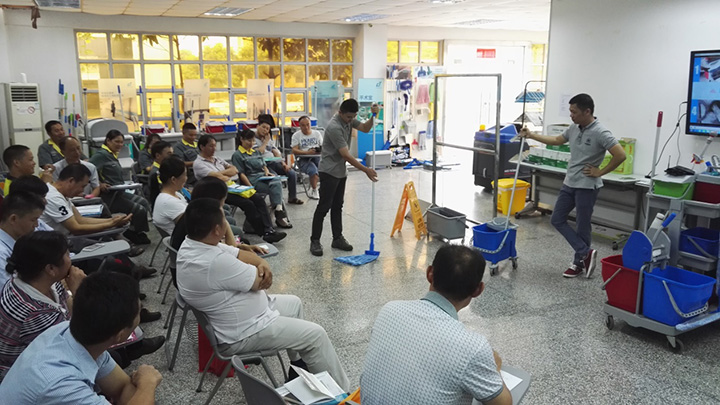 為了更好地推動保潔行業發展,提高行業服務水平,灌輸保潔新概念,佛山健力集團公司經常和保潔協會、清潔公司及相關行業單位舉辦不同階段的培訓班,致力提升我們行業整體水平及素質。