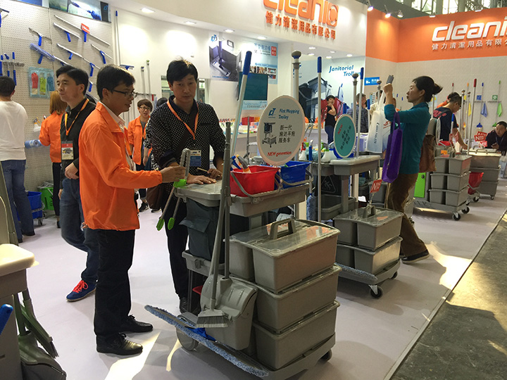 此次展會期間,健力集團展示了全新的產品及配套系統,包括Columbus德國奧林匹斯機械,CT施達清潔工具系列,新產品百變清潔桶及清潔間標準化示范區。參觀客戶都對健力集團的展品表示極大的興趣及好評。