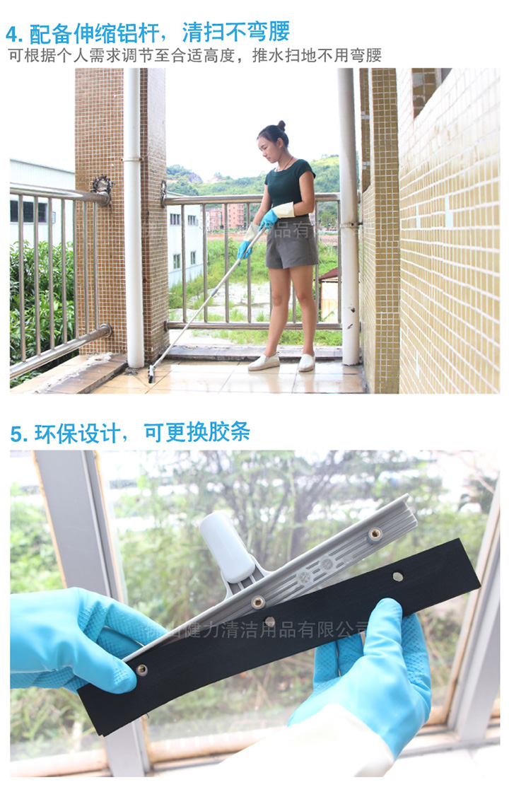 佛山施達現新推出一款專利產品: 輕巧型調向推水扒。它能滿足你日常推、掃、刮等清潔工作外,甚至讓您在狹窄空間(如洗手間)能靈活運用自如,該推水扒為180o手柄調向,雙層膠條設計讓它能夠靈活操作之余更能保證極佳的清潔效果,膠條及每個部件都能更換使用,大大降低使用成本同時充分體現了環保設計理念,除了推水功能之外還能滿足日常垃圾、毛發、灰塵的清掃以及墻面和玻璃刮水等工作,擁有這么一件功能齊全的工具,讓繁瑣的清潔也可以很輕松。